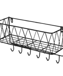 Επιτοίχια θήκη οργάνωσης με ράφι – 6 γάντζους μαύρη Υ19x34x12εκ.