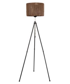 Φωτιστικό δαπέδου μεταλλικό σε μαύρη απόχρωση με bamboo καπέλο σε καρυδί απόχρωση ⌀30xY165 εκ.