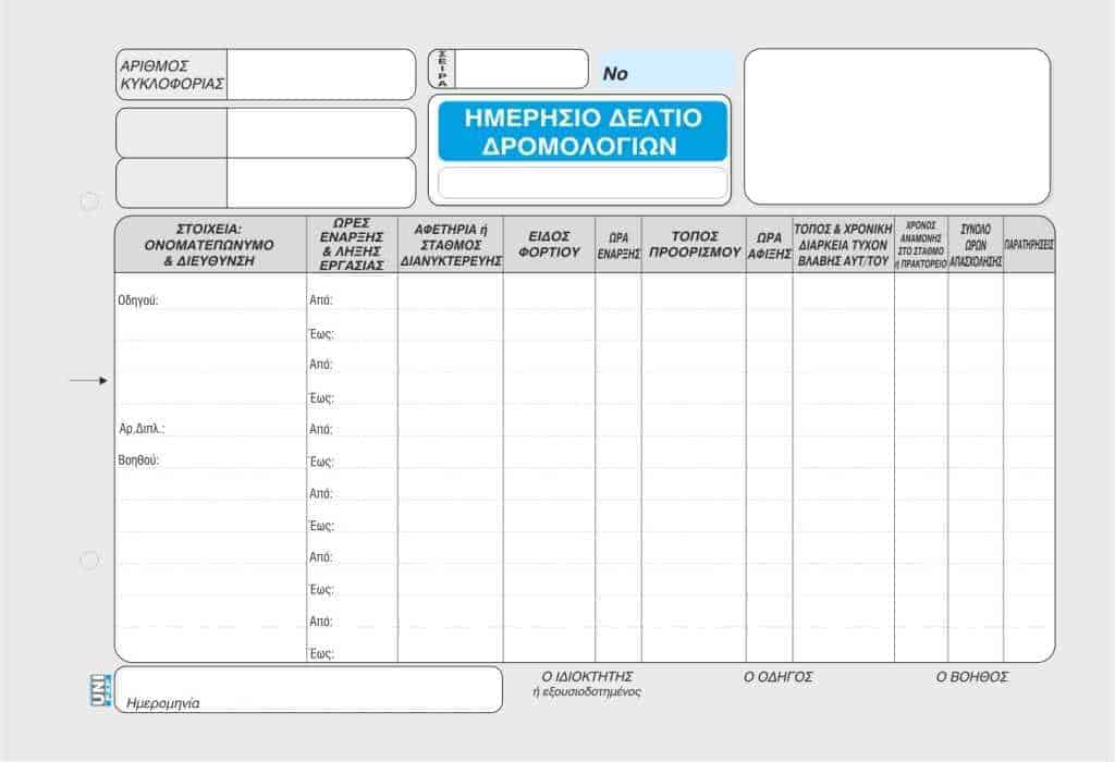 ημερήσιο δελτίο δρομολογίων τριπλότυπο unipap 1-32-11