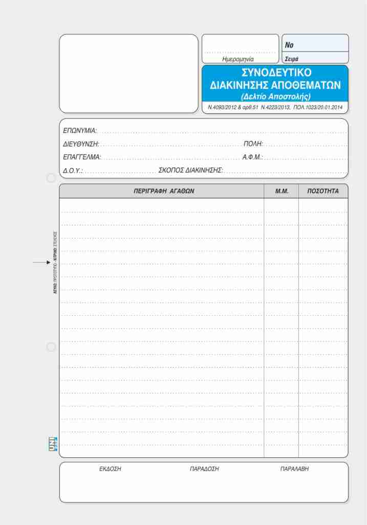 συνοδευτικό διακίνησης αποθεμάτων διπλότυπο unipap 1-02-20