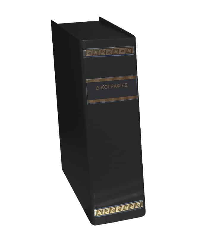 Με τυπωμένη τη λέξη “Δικογραφίες” στη ράχη.