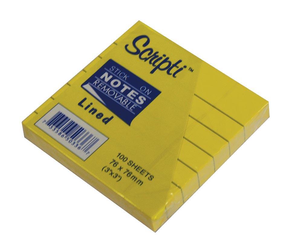 Αυτοκόλλητα χαρτάκια ριγέ κίτρινα 7,6x7,6εκ. 100φ.