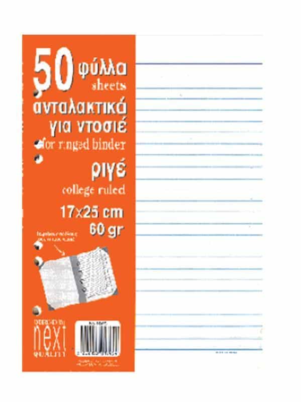Next ανταλλακτικά φύλλα ριγέ για ντοσιέ 50φ. 17×25εκ.