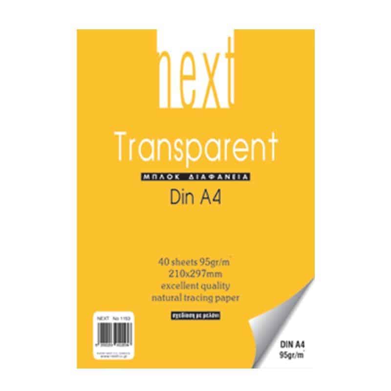 Next μπλοκ διαφάνεια 95γρ. Α4 40φύλλων