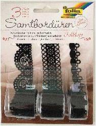 Δαντέλα βελούδινη μαύρη 3 διαφ.σχέδια, 1 μέτρο/ρολλό σε blister