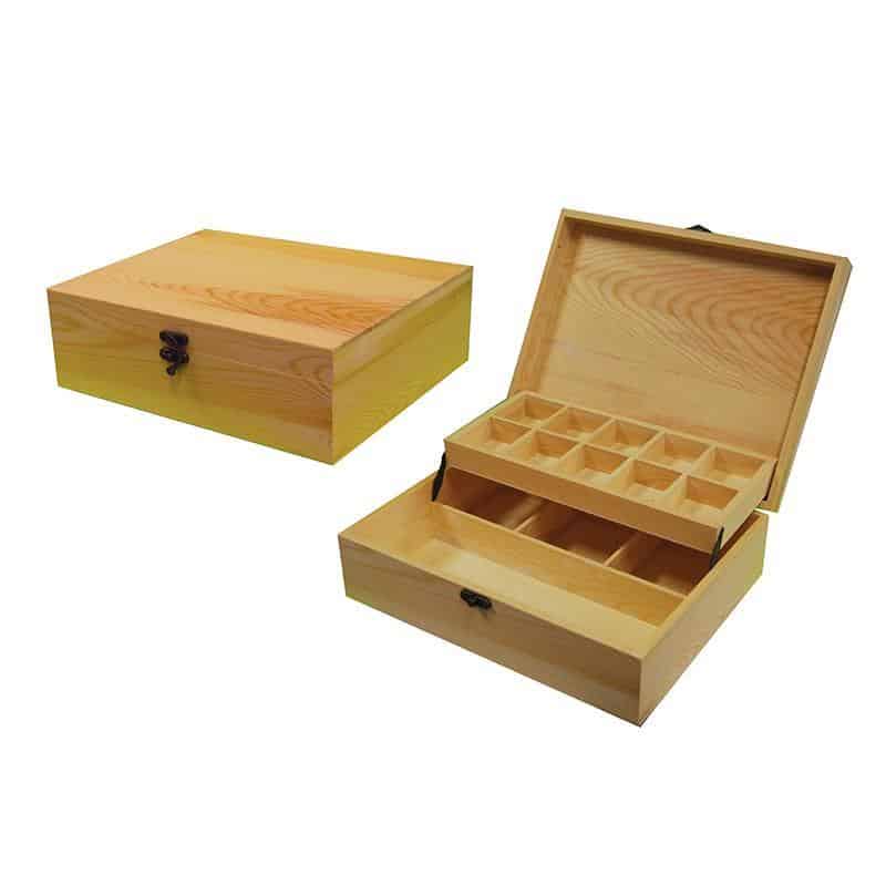 Κουτί ξύλινο με 2 επίπεδα και διάφορες θήκες.