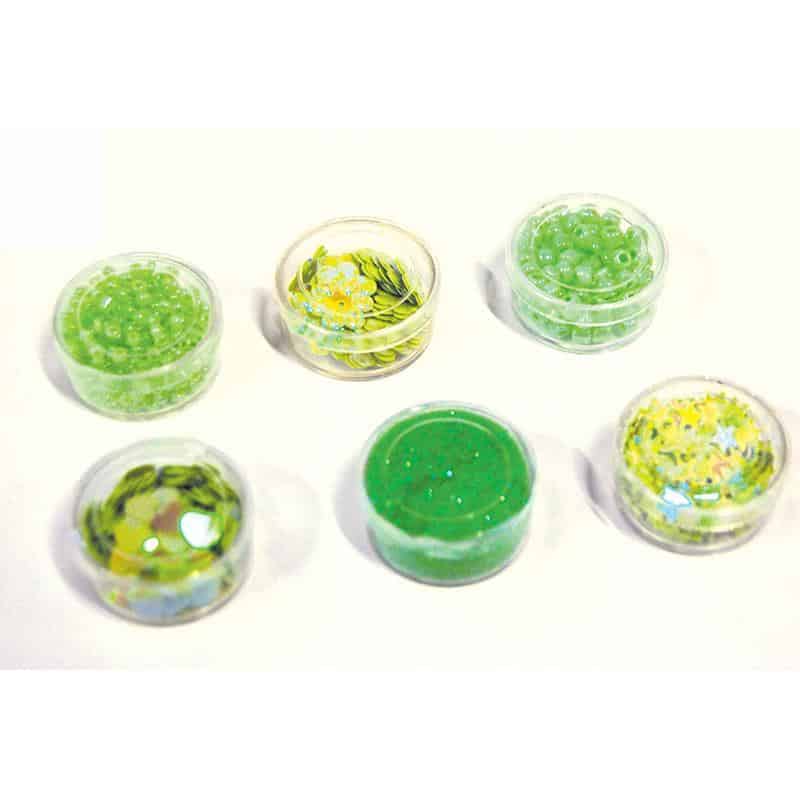Χάντρες και πούλιες πλαστικές 6 σχέδια σε blister πράσινες
