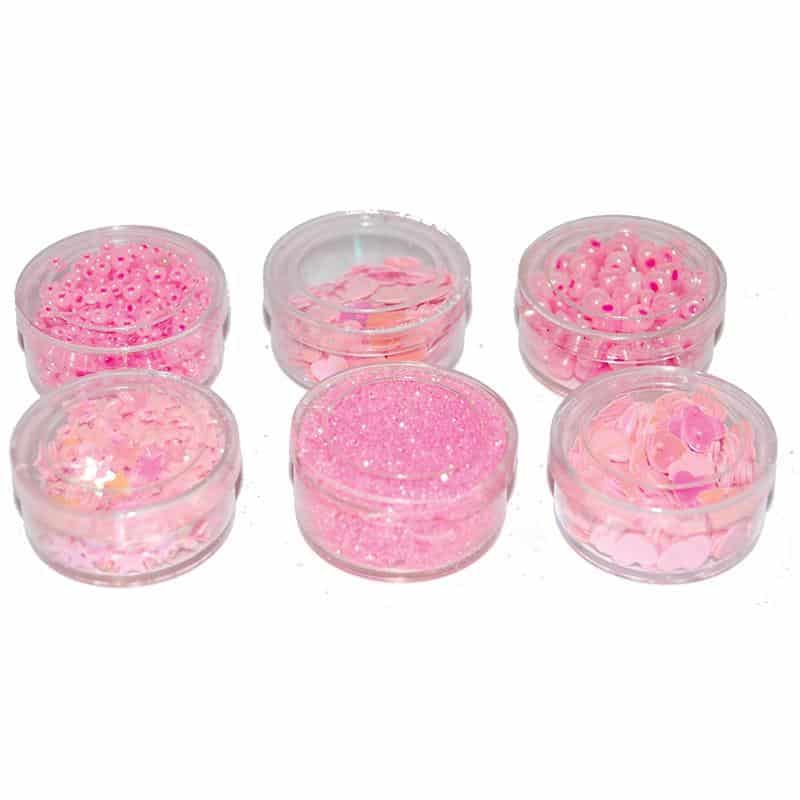 glitter σε σκόνη, πούλιες σε σχήμα αστεράκι και σχήμα καρδιάς.