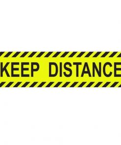 Φωσφοριζέ αυτοκόλλητο χαρτί με έντονη αντίθεση “KEEP DISTANCE”.