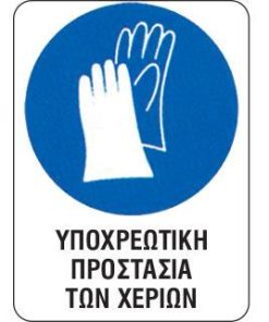 Πινακίδα pvc “Υποχρεωτική προστασία χεριών”.