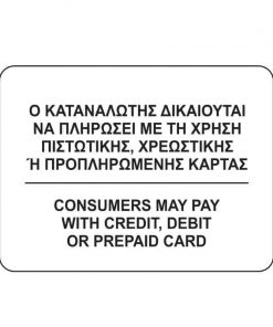 Next επιγραφή “Ο καταναλωτής δικαιούται να πληρώσει με κάρτα” 12×16εκ.