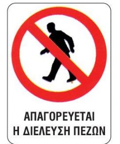 Next επιγραφή pp “Απαγορεύεται η διέλευση πεζών” 15×20εκ.
