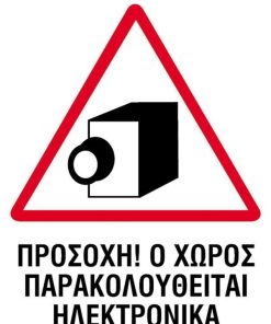 Πινακίδα pp “Ο χώρος παρακολουθείται ηλεκτρονικά”.