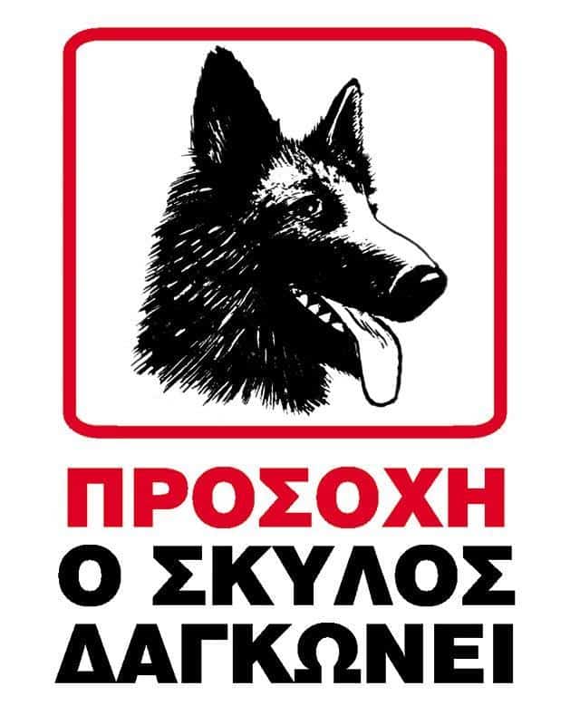 Πινακίδα pp “Ο σκύλος δαγκώνει”.