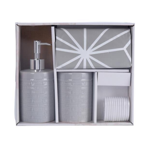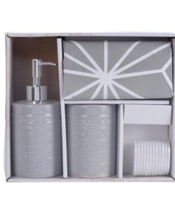 Το σετ περιλαμβάνει ένα dispenser υγρού σαπουνιού, μια θήκη για οδοντόβουρτσες