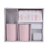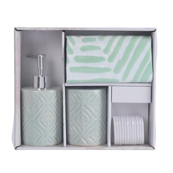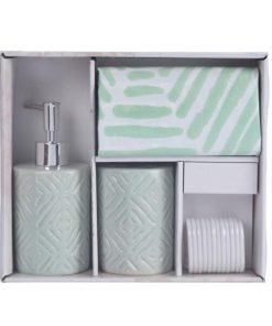 Το σετ περιλαμβάνει ένα dispenser υγρού σαπουνιού, μια θήκη για οδοντόβουρτσες