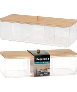 Ακρυλικό organizer μακιγιάζ διάφανο, με bamboo καπάκι πάχους 0,7εκ. Διαθέτει 2 διαχωριστικά, χωρίζοντας το έτσι σε 3 θέσεις για να τακτοποιείτε τα είδη για το μακιγιάζ σας.