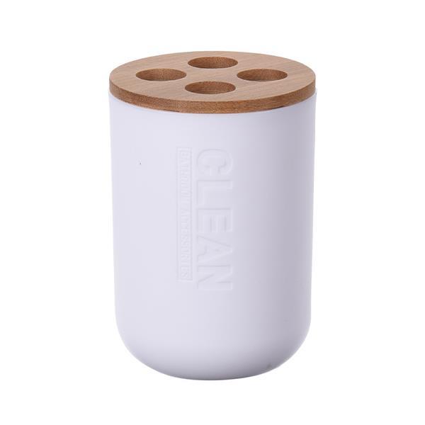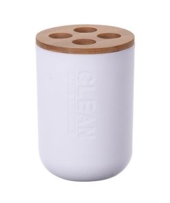 Θήκη για 4 οδοντόβουρτσες πλαστική λευκη με επιφάνεια από bamboo.