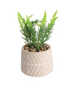 Γλαστράκι κεραμικό, μπεζ με τεχνητό φυτό Ø9,5xY16εκ.
