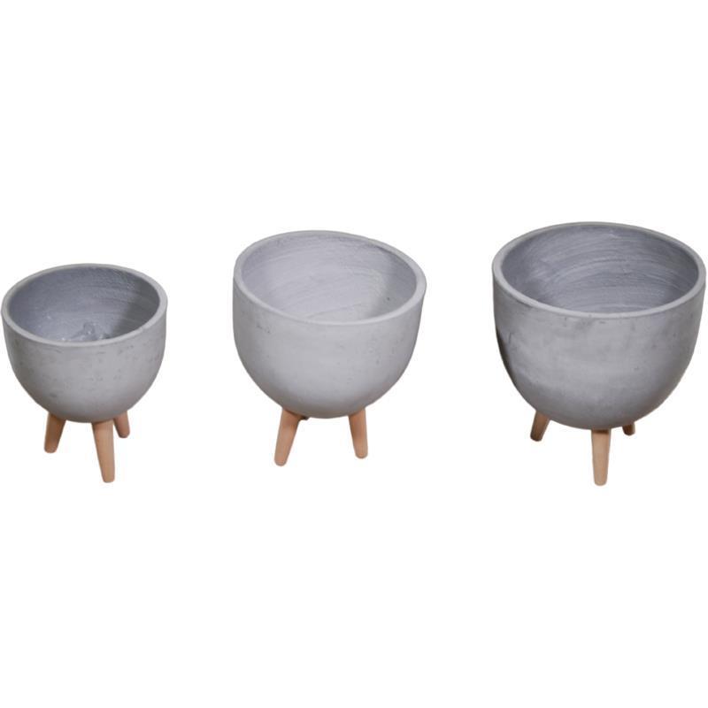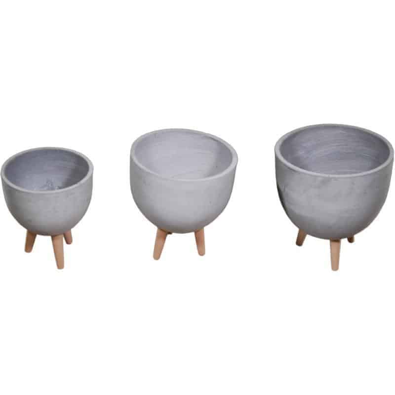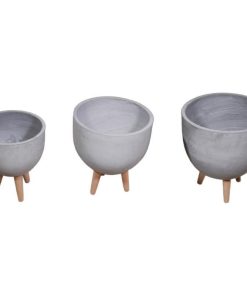 Σετ 3 γλάστρες στρόγγυλες γκρι, από τσιμέντο Υ40×37εκ. – Υ36×32εκ. – Υ31.5×26.5εκ.