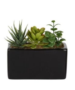 Σύνθεση από παχύφυτα μέσα σε όμορφη γλάστρα με μαύρο γυαλιστερό φινίρισμα.