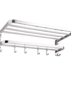 Επιτοίχια κρεμάστρα με ράφι, πετσετοθήκη – 5 γάντζους inox Υ18,6x60x23εκ.