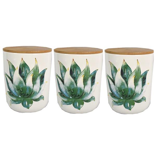 Βαζάκι κεραμικό κάκτος με καπάκι μπαμπού, σετ 3τμχ Υ12×10εκ.