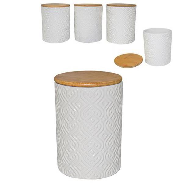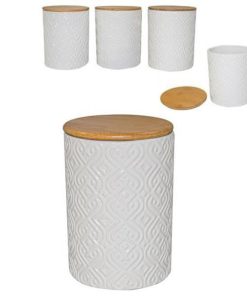 Βαζάκι κεραμικό με καπάκι μπαμπού Υ15,5×11εκ.
