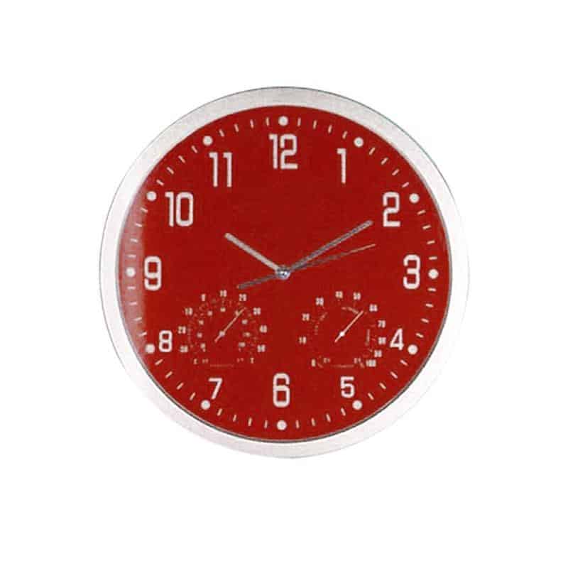 Ρολόι τοίχου θερμόμετρο-υγρόμετρο κόκκινο καντράν Ø35εκ.