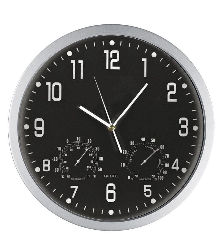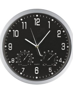Ρολόι τοίχου θερμόμετρο-υγρόμετρο μαύρο καντράν Ø35εκ.