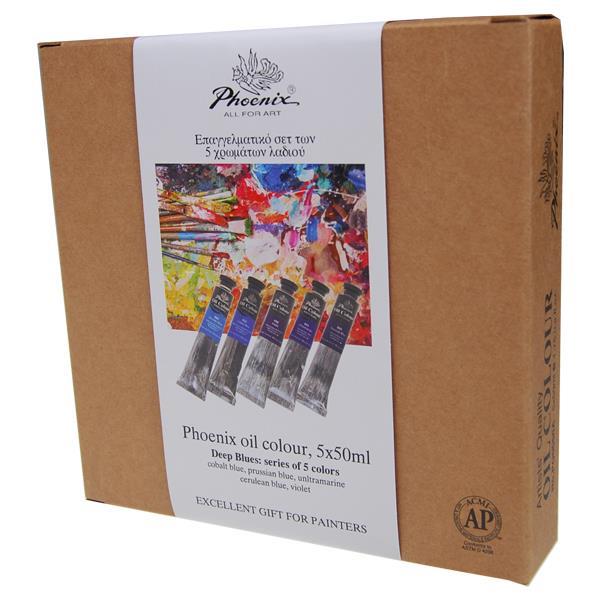 Phoenix σετ χρωμάτων λαδιού “Deep Blues” 5 τεμάχια, 50ml/τεμ.