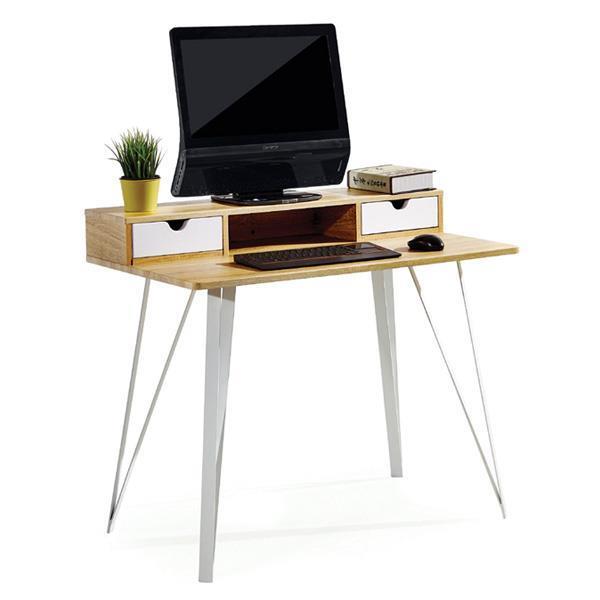 Γραφείο υπολογιστή καφέ με δυο λευκά συρτάρια Υ87x100x60εκ. βάθος