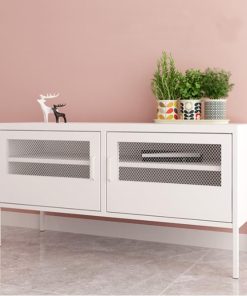 Έπιπλο τηλεόρασης μεταλλικό Nextdeco με ανοιγόμενες πόρτες λευκό Υ60x118x40εκ. με ανοιγόμενες πόρτες