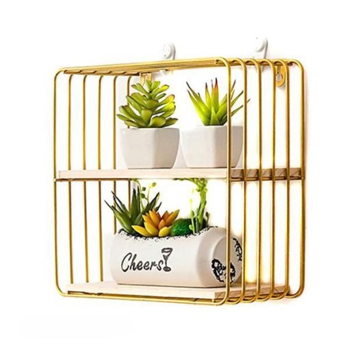 Ράφι επιτοίχιο τετράγωνο με χρυσό μεταλλικό σκελετό.