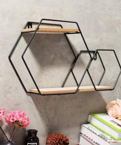 Ράφι επιτοίχιο Nextdeco minimal εξάγωνο μαύρο Υ25x25x12εκ.