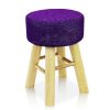 Σκαμπό υφασμάτινο Nextdeco κίτρινο με ξύλινα πόδια Υ37x35Ø εκ.