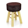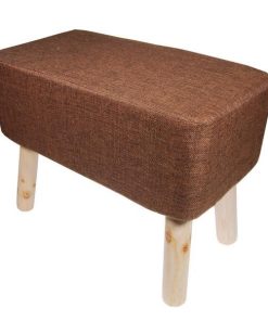 Σκαμπό υφασμάτινο Nextdeco καφέ με ξύλινα πόδια Υ37×35Ø εκ.