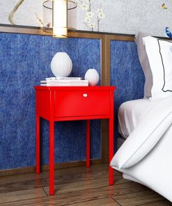 Τραπεζάκι κομοδίνο Nextdeco μεταλλικό με συρτάρι κοκκινο Υ60x40x40εκ.