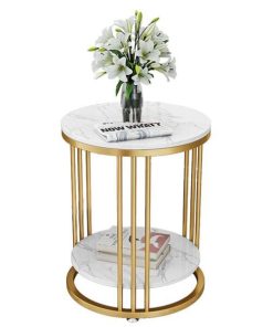 Τραπέζι – κομοδίνο μεταλ. στρογγυλό Υ55εκ. x Ø50 εκ. 2 επιπέδων χρυσό