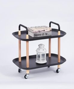 Τραπέζι βοηθητικό – τρόλεϊ ξύλινο με 2 επίπεδα μαύρο 58x36xΥ51εκ.