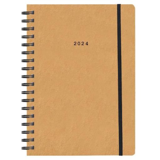 Next ημερολόγιο 2024 Natural ημερήσιο σπιράλ μουσταρδί με λάστιχο 17×25εκ.