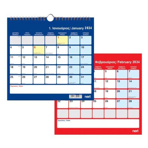 Next ημερολόγιο 2024 μηνιαίο επιτοίχιο 25×23εκ. 12φ.