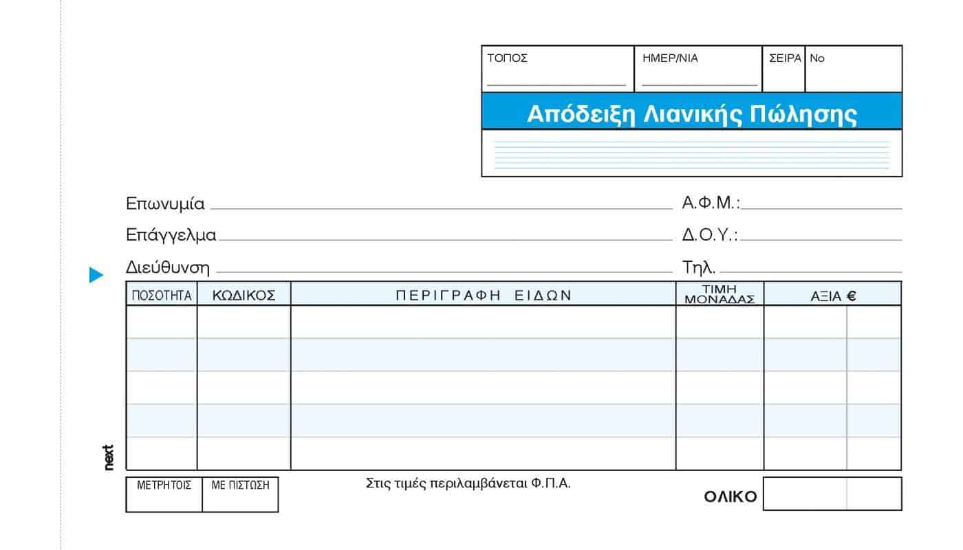 Απόδειξη λιανικής πώλησης, τριπλότυπη 3×50 φύλλα.