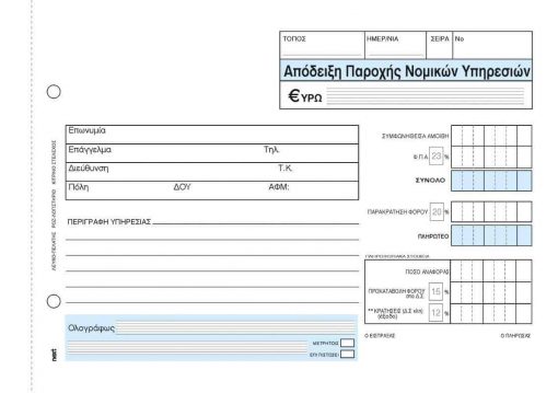 Next απόδειξη παρ. νομικών υπηρ. 2×50φ 14×21εκ.