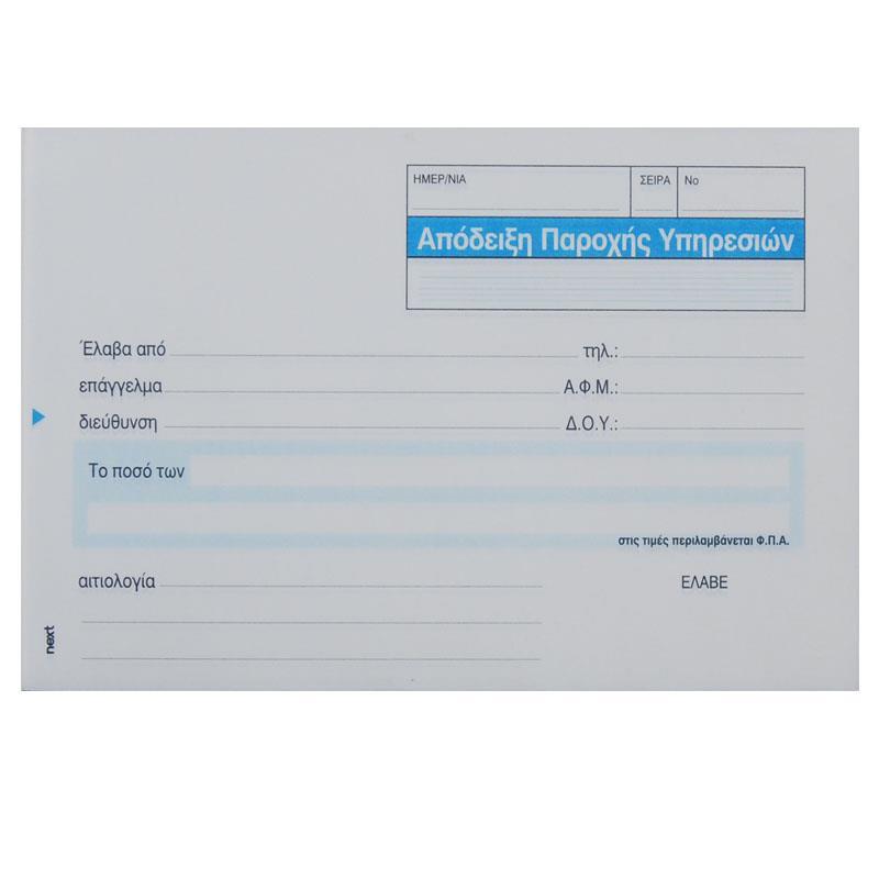 Απόδειξη παροχής υπηρεσιών, διπλότυπη 2×50 φύλλα.