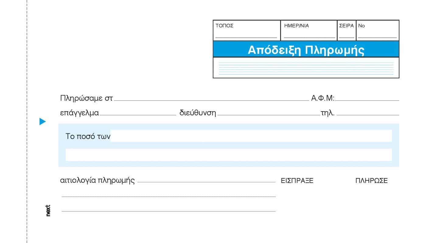 Next απόδειξη πληρωμής 2×50φ 10×17εκ.