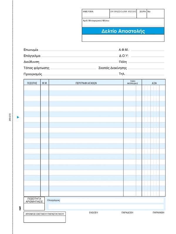 Συνοδευτικό διακίνησης αποθεμάτων (δελτίο αποστολής), τριπλότυπο 3χ50 φύλλα. Διαστάσεις: 21χ29εκ.