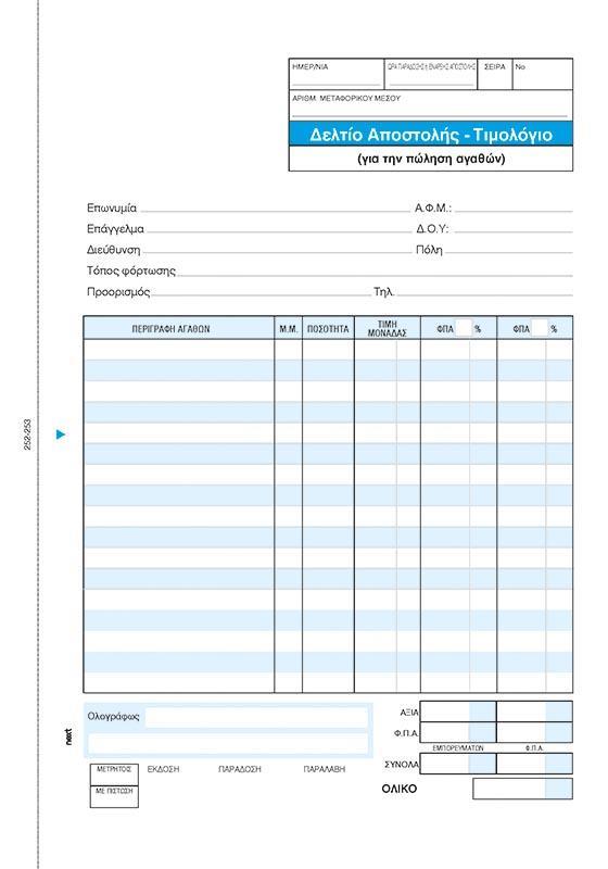 Δελτίο Αποστολής-Τιμολόγιο με 2 στήλες ΦΠΑ, διπλότυπο 2×50 φύλλα.