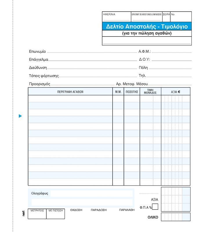 Next δελτίο αποστ.-Τιμολόγιο πωλ.αγαθ. 2×50φ 17×20εκ.