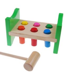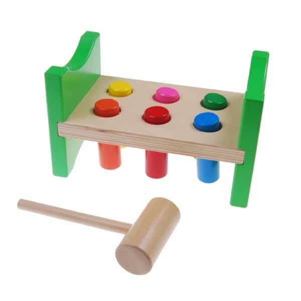 Το παιδί χτυπά με το σφυράκι τα ξύλινα καρφιά μέχρι να περάσουν από την άλλη μεριά.